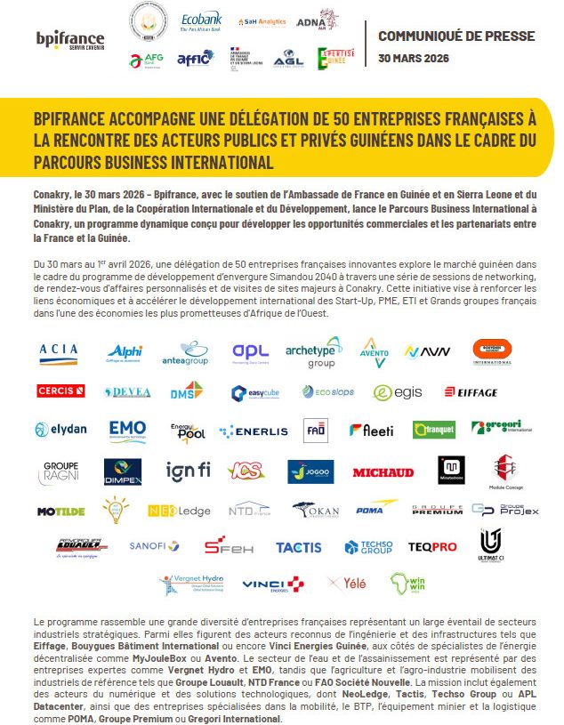 Conakry, 30 mars 2026 — À l’approche du Forum d’Affaires Guinée–France, prévu le 31 mars dans la capitale guinéenne, une nouvelle impulsion est donnée à la coopération entre les deux pays. Au...