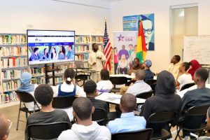 La séance a été marquée par le témoignage inspirant d’Aissatou Diallo, étudiante guinéenne en deuxième année de licence en administration des affaires au Lane Community College, à Eugene, dans l’Oregon. Elle a partagé son parcours, depuis l’apprentissage de l’anglais au Centre américain et sa participation aux clubs de conversation, jusqu’à la réussite de son test de langue, son admission et son départ vers les États-Unis.